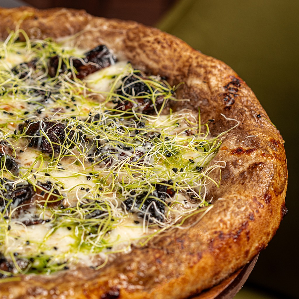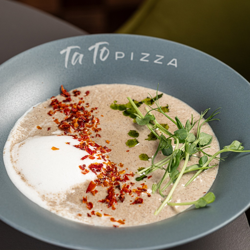 вершково-грибна основа, крафтова моцарела, бекон, мікс грибів, часникова олія560 г