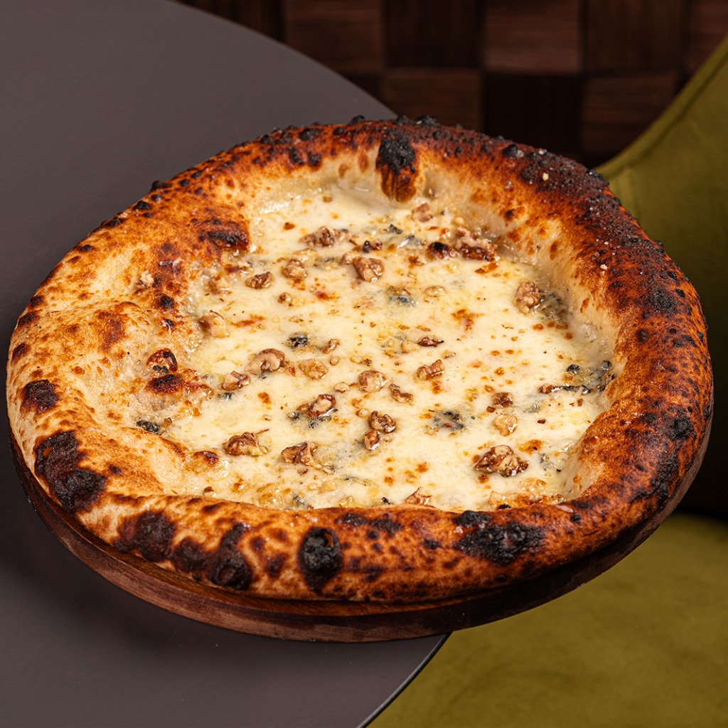 дуууже багато крафтового сиру - моцарела, блакитний сир, гауда, соус бешамель, грецькі горіхи, часникова оліяОрієнтовний вихід страви - 305 гSolo піца - піца для тих, хто не любить ділитися, формат 24 см для легкого задоволення