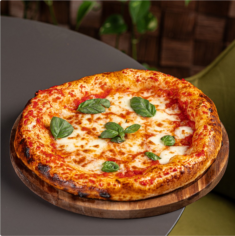 томатний соус, крафтова моцарела, базилік, часникова оліяОрієнтовний вихід страви - 270 гSolo піца - піца для тих, хто не любить ділитися, формат 24 см для легкого задоволення