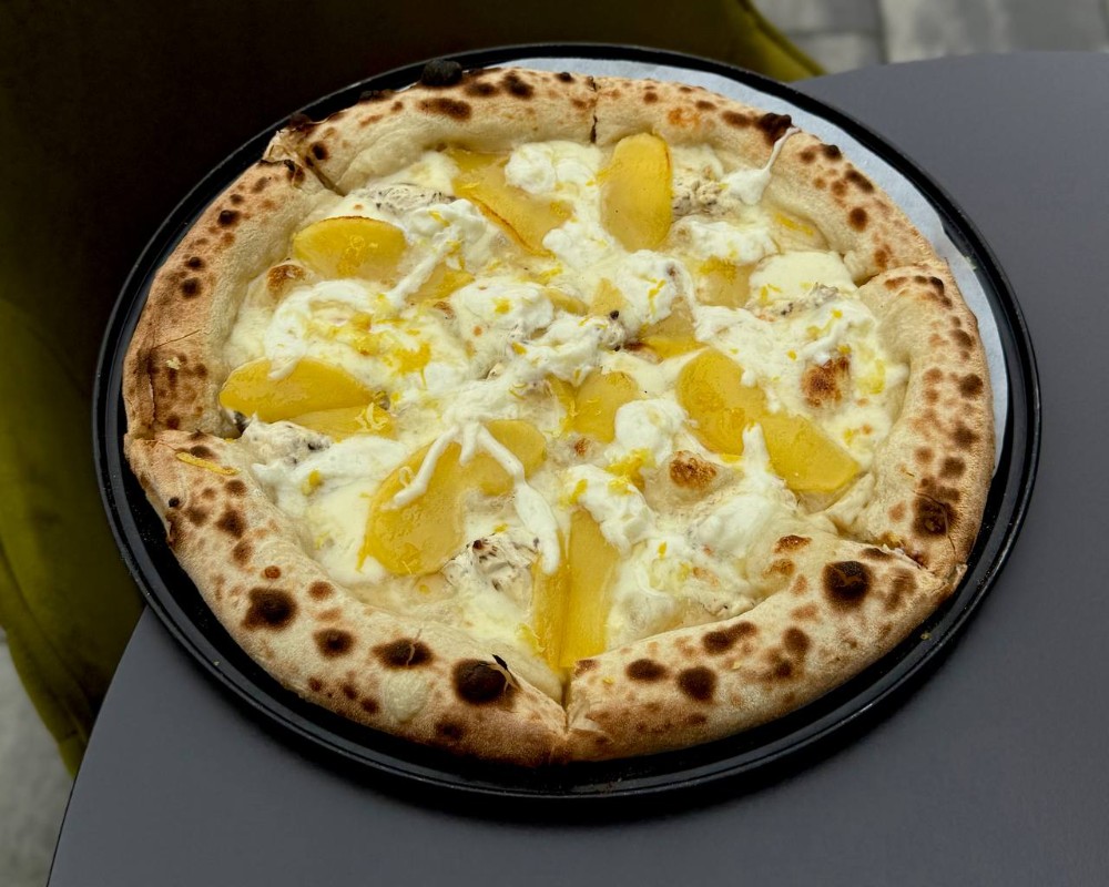 Піца з трюфельним крем-сиром і карамелізованим яблуком