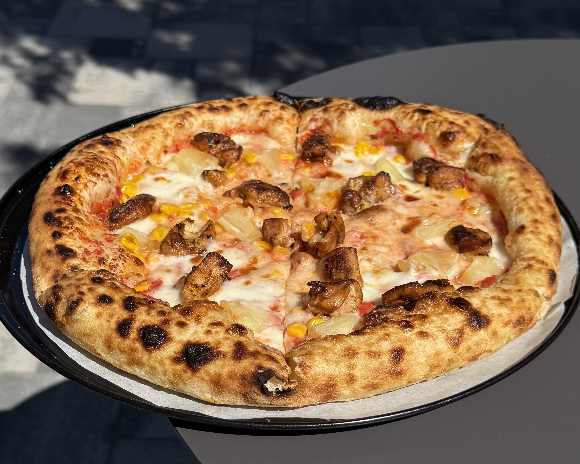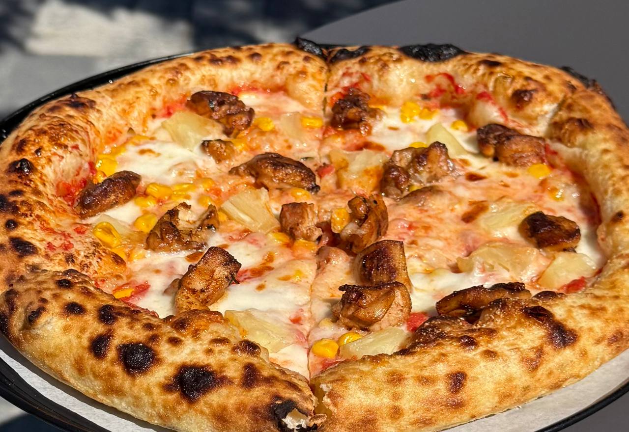 томатний соус, курка, крафтова моцарела, кукурудза, ананас, часникова оліяОрієнтовний вихід страви - 500 г